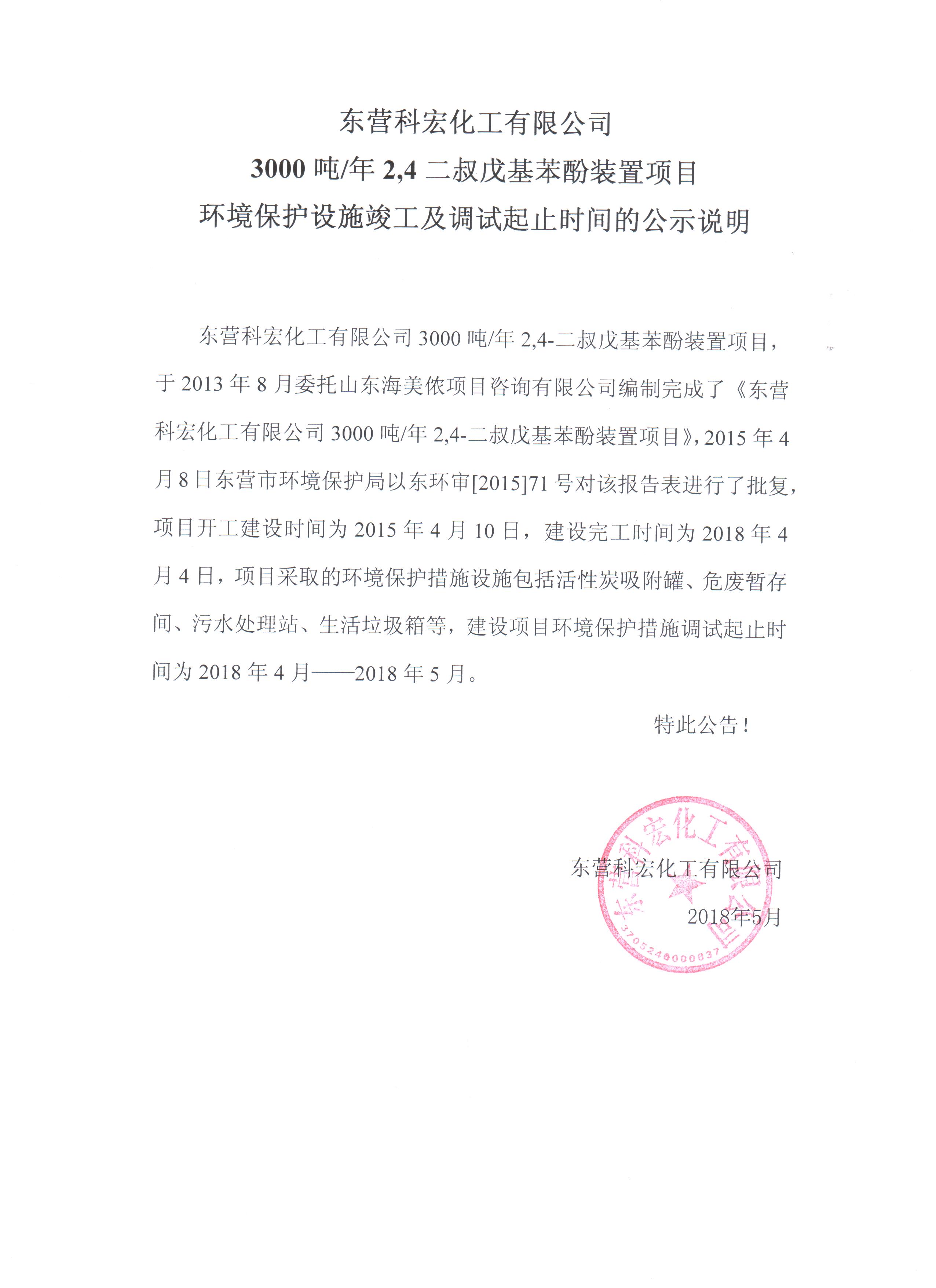 環境(jìng)保護設(shè)施竣工(gōng)及調試(shi)起止時(shi)間的公(gong)式說明(ming)